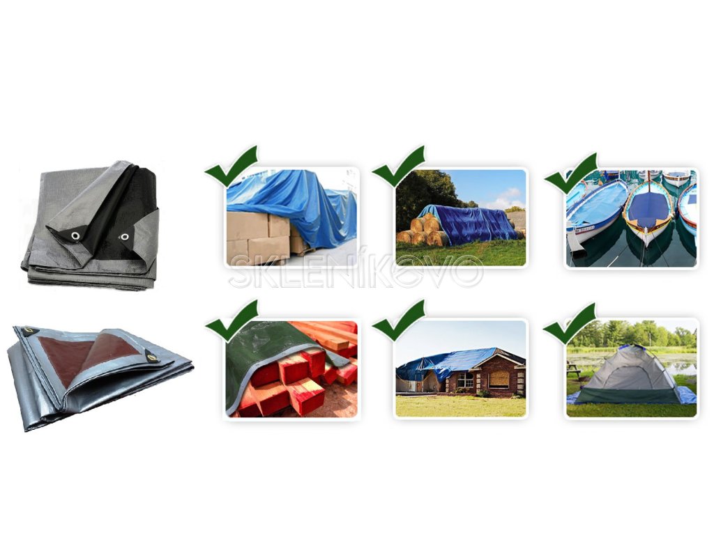 Na ochranu vášho majetku pred vplyvmi počasia sú riešením nepremokavé krycie plachty s okami. Využívať sa dajú bez ohľadu na počasie, bez zmeny vlastností zvládnu teploty -20 °C – 40 °C a použiť ich môžete tiež v interiéri. Krycia plachta 20x20m (130g/m2) zeleno - strieborná je 100 % vodoodolná, nepoškodí ju dážď, sneh ani krupobitie.