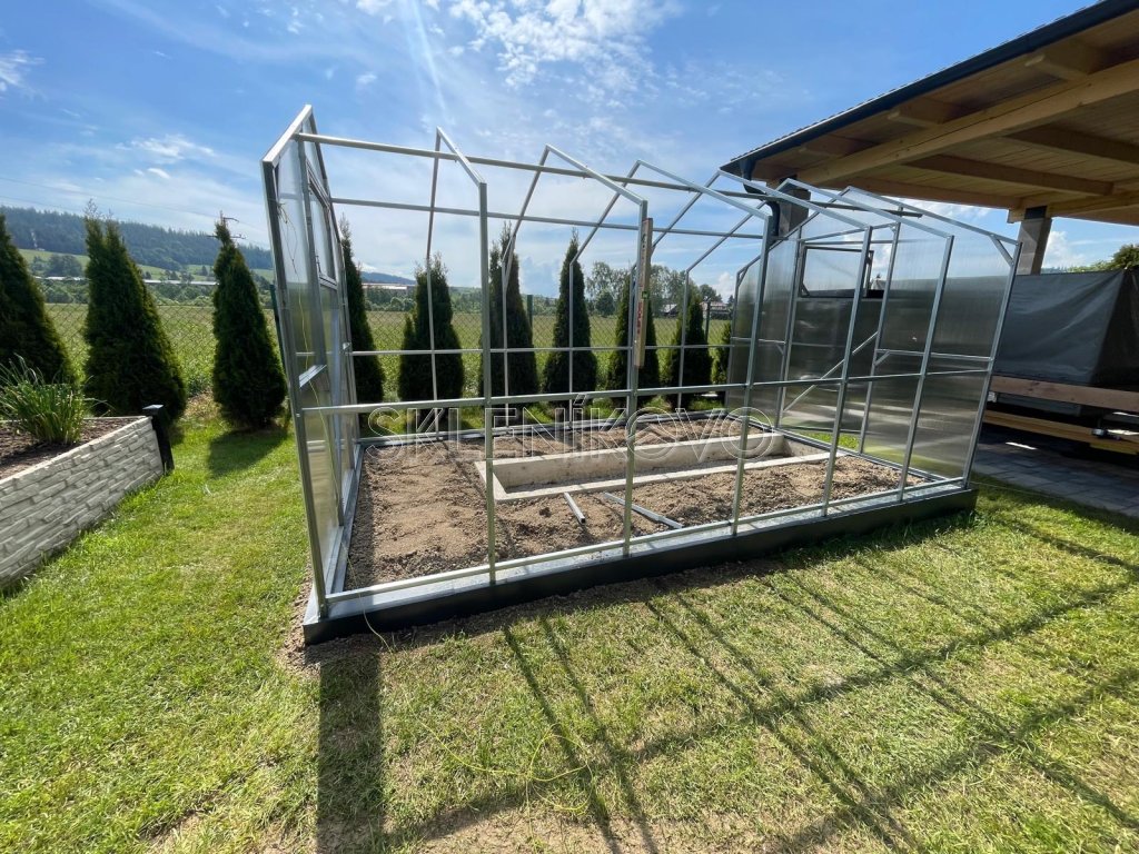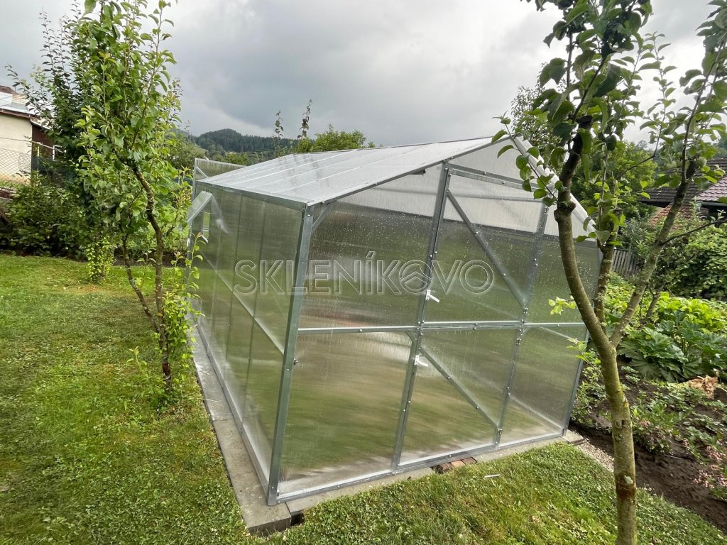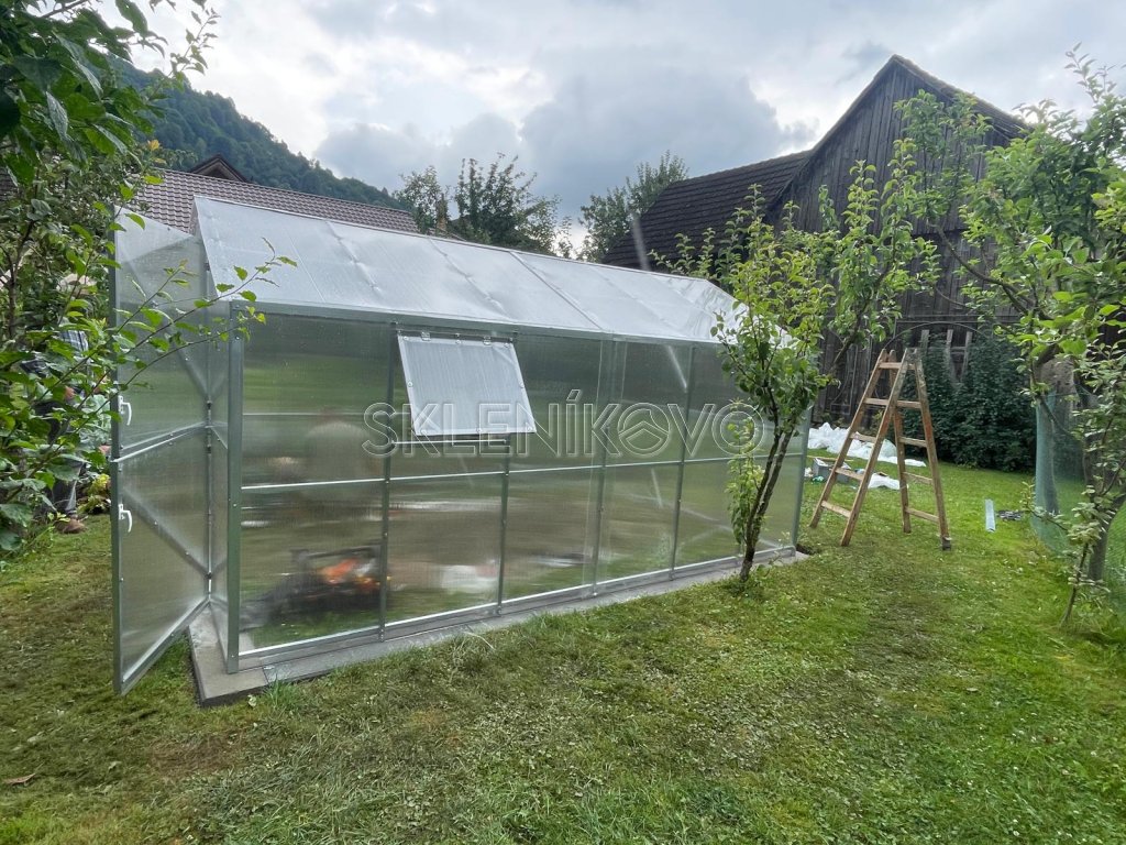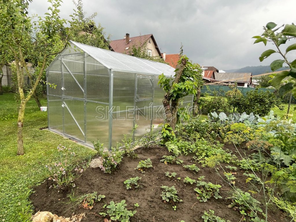 Papriky, rajčiny či uhorky — to sú len tri z mnohých druhov zeleniny, ktorým sa dobre darí v skleníku. Záhradný skleník poskytne všetkým pestovaným rastlinám ideálne podmienky, ktoré pri pestovaní na vonkajšom záhone nedosiahnete. Umožní vám predĺžiť pestovateľskú sezónu a mať tak čerstvú zeleninu takmer po celý rok. Polykarbonátové steny prepustia dnu dostatok svetla a spolu s gumovým tesnením s postarajú o stabilnú teplotu, skleník sa dá aj vykurovať. Polykarbonátový skleník DOMČEK 2,5 m je priechodný a má jednokrídlové dvere na prednej aj zadnej strane. Dvere sú vybavené zvislým oknom. Vybrať si môžete prevedenie s dĺžkou 4, 6, 8 alebo 10 metrov
