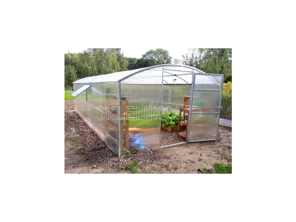 Tento záhradný skleník má dve okná a dvoje dverí, takže je priechodný. Zabezpečené je tiež dostatočné vetranie, ktoré znižuje riziko napadnutia rastlín hubovými ochoreniami. Navyše sa dá nekonečne predlžovať. Vybrať si ho preto môžete v preferovaných rozmeroch.