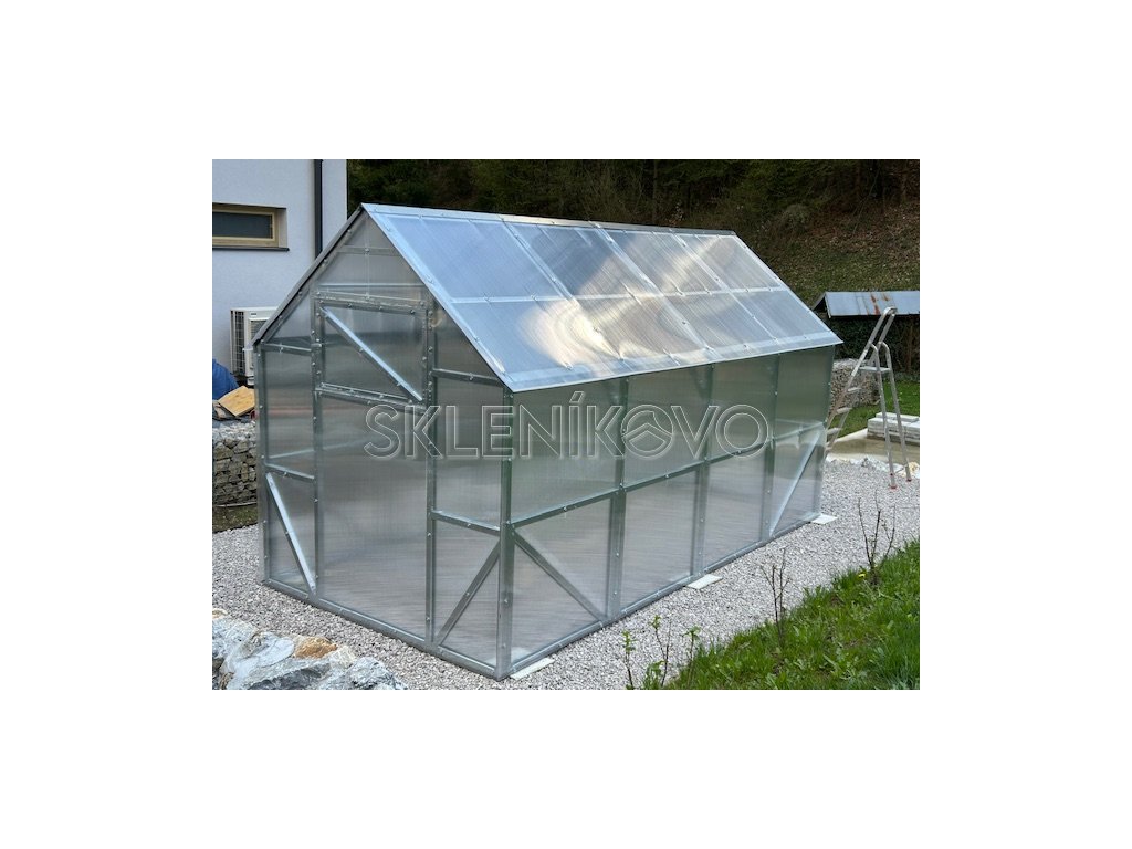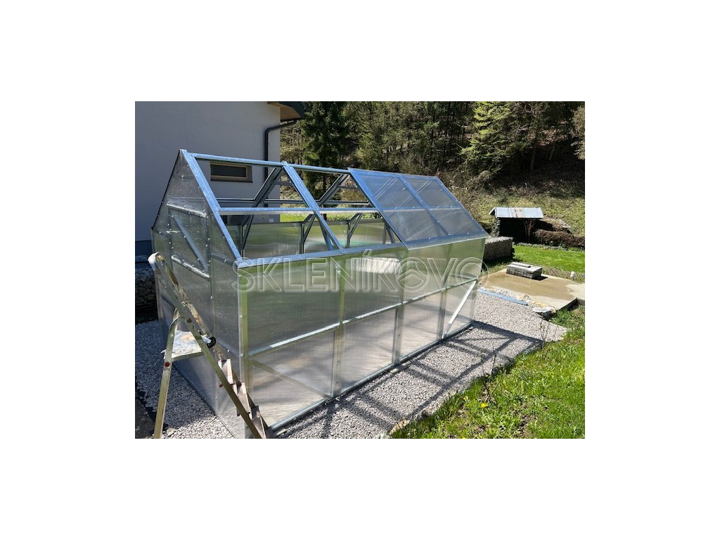 Rám je v demonte, zabalený v krabiciach. Polykarbonát zvinutý do rolky alebo tabuľa š.2,1 -d.6m. Skleník je určený na inštaláciu na základ. Konštrukcia je silná, mohutná a stabilna až 40x20p. Montáže sa netreba obávať.