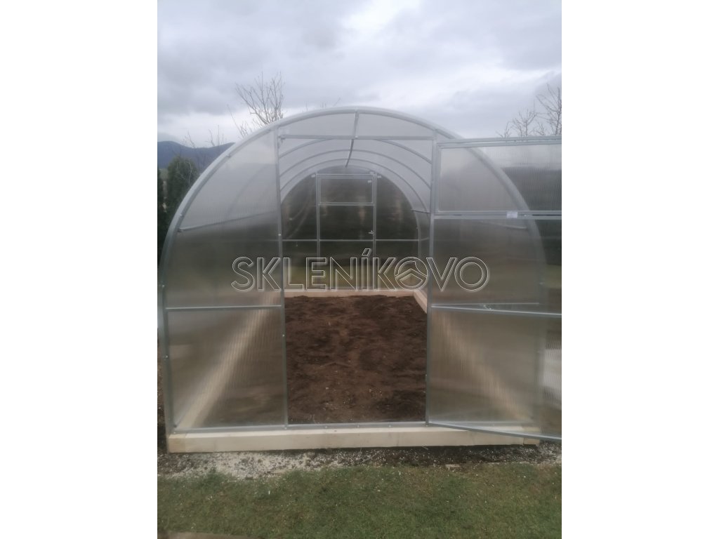 - Polykarbonát hrúbka - 4mm/6mm s dvojitou UV ochranou. Každý skleník je vybavený pémiovým vysokogramážnym dutinkovým polykarbonátom o hrúbke 4mm. (v ponuke aj 6mm)