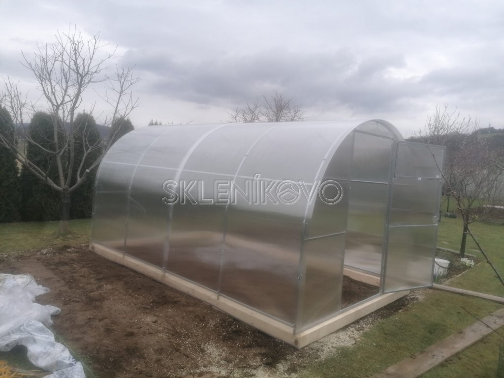 Každý skleník je vybavený prémiovým vysokogramážnym dutinkovým polykarbonátom o hrúbke 4mm. (v ponuke aj 6mm)