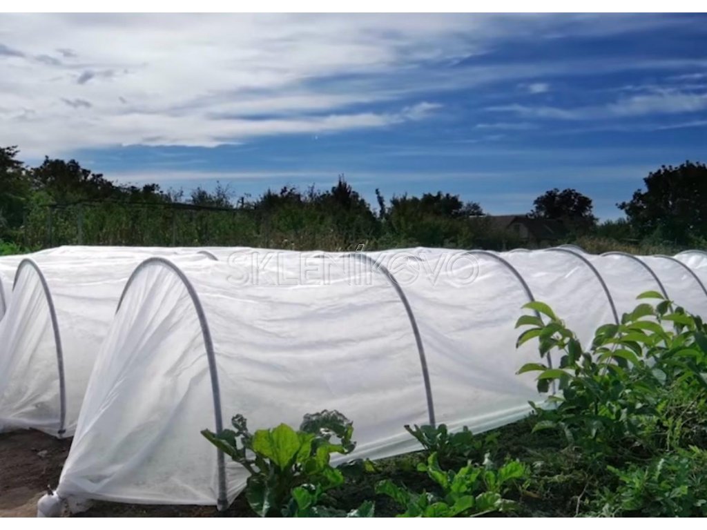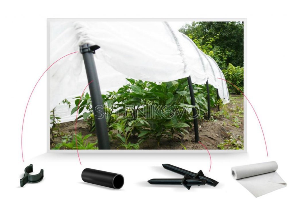 Agrotextília navlečená na oblúkoch + príslušný materiál na ukotvenie.
