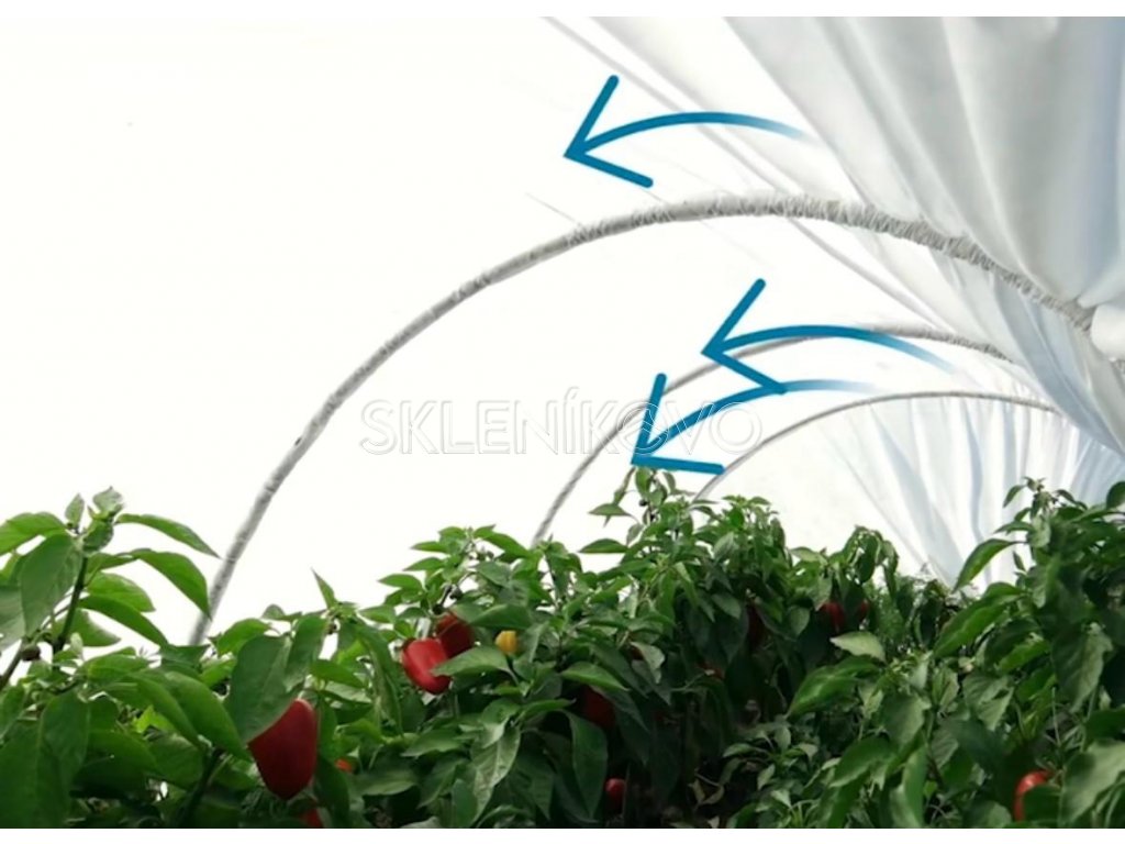 - Agrotextíliu môžete na tyčiach posúvať a nastaviť prekrytie rastlín podľa aktuálnych poveternostných podmienok.